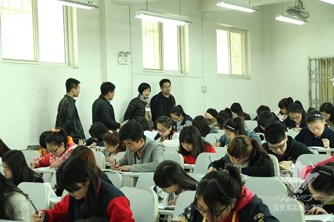 考试进程中,西安海棠学院党委书记张桂荣、党校校长吕博、党委组织部部长贾主任深入到2个考场进行了细致巡查。考场上有的同学冥思苦想,有的同学奋笔疾书,从他们严肃的表情中可以看出,学员们对这次党课结业考试十分重视,以认真的态度作答着每一道题目。考试要求严格,考场纪律良好,没有出现违纪违规现象。