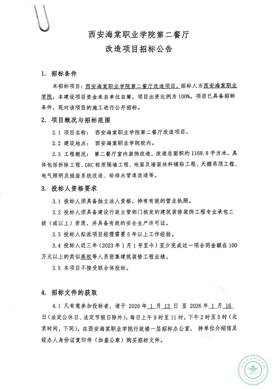 beat365中文官方网站第二餐厅 改造项目招标公告