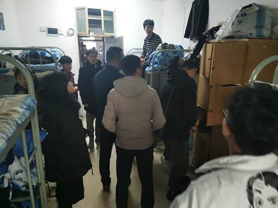 12月19日下午,我院由尚海洋院长和秦志春副院长带领全体学管人员和班干部还深入学生宿舍进行安全大排查,在关心学生生活的同时细致检查了宿舍中存在的安全隐患问题,将存在的问题记录并责令按期进行整改。并叮嘱学生要及时调整复习心态,做到诚信考试、诚信做人。12月19日晚,我院学生科组织各年级辅导员、学生干部对我院各年级宿舍进行交叉检查,认真贯彻落实学院安全排查工作,消除潜在的安全隐患。