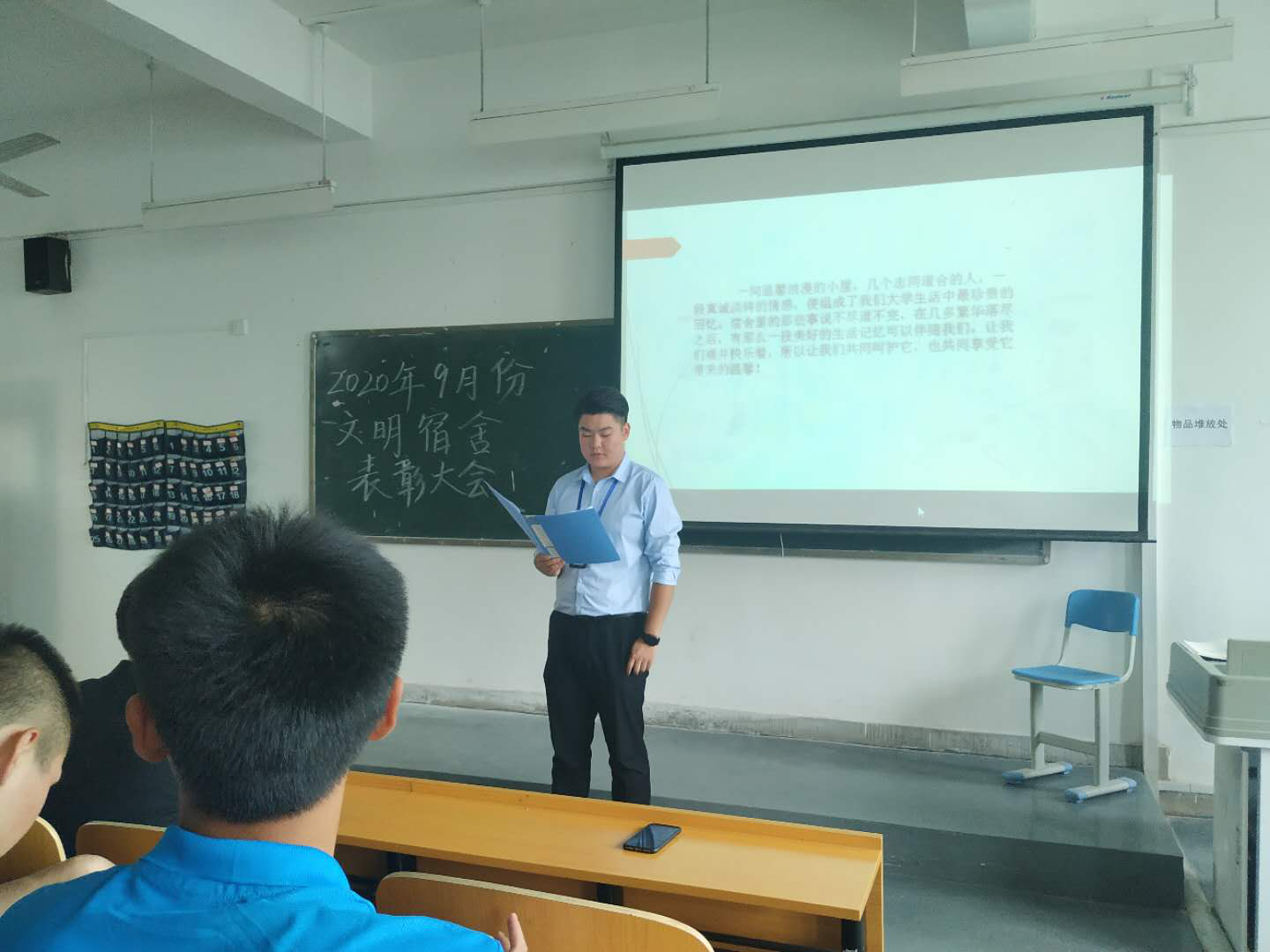 9月24日下午,我院“2020年九月份文明宿舍表彰会”在1319教室举行。公寓部马苏汉、郭平奎老师,公寓部学生干部、各公寓楼长及文明宿舍学生代表共同参与本次会议。会议由公寓部学生干部刘侯亮主持。