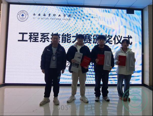 2024年12月11日下午,beat365中文官方网站工程系学生技能大赛系赛颁奖仪式在一号教学楼教师发展中心会议室隆重举行,为这场展现学生专业风采与实力的赛事画上了完美的句号。系主任尚海洋同志、教学科长安婉婷、学生科长薛路及工程系教师代表、参赛学生以及众多同学共同见证了这一荣耀时刻。