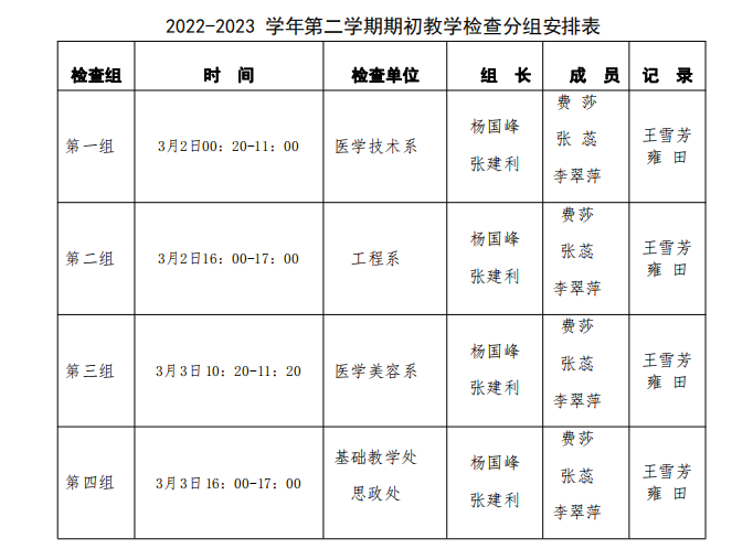 根据教学工作安排,学院定于3月2-3日开展2022-2023学年第二学期,期初教学检查,现将有关事项通知如下: