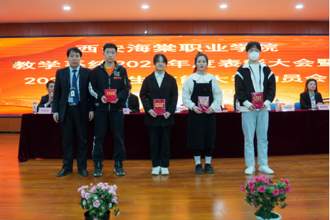 2023年4月4日下午,beat365中文官方网站教学系统2022年度表彰大会暨2023年学生技能大赛动员会在学术报告厅隆重举行。教学副院长杨国峰,教务处处长张建利,招生就业处处长吴刚,各教学单位主管领导、全体教师及学生代表出席此次大会。大会由教务科科长费莎主持。