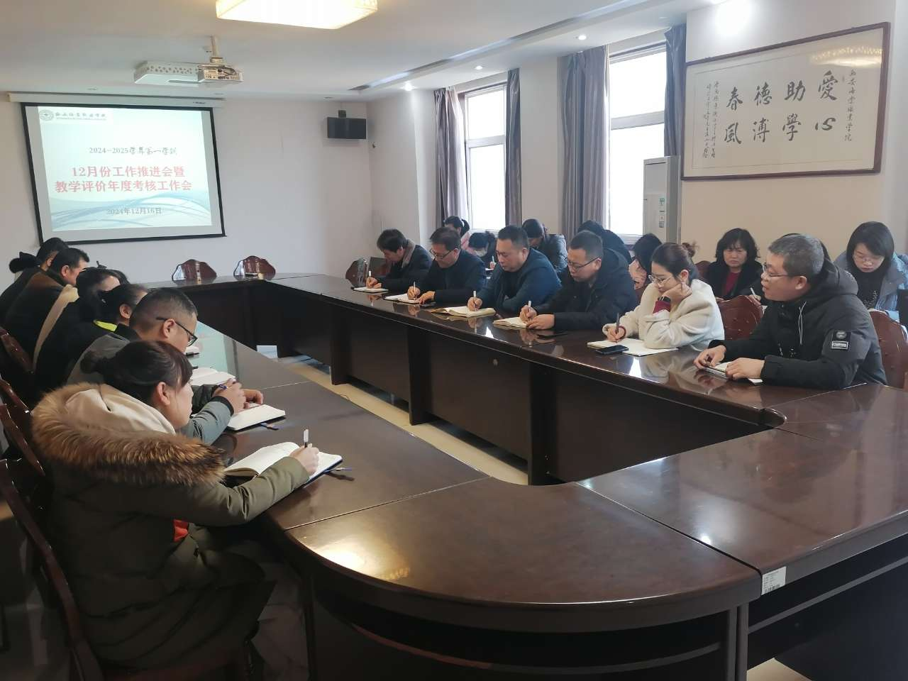 2024年12月16日下午,学院教学系统各单位在行政楼二号会议室召开教学系统12月份重点工作推进暨年度教学评价工作会议。教学副院长杨国峰,教务处、各系部负责人及科级以上教学管理干部参会,同时还邀请王建军秘书长出席会议。