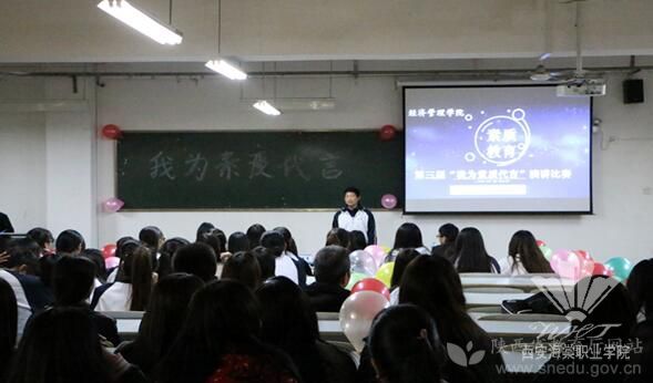 ——举行第三届“我为素质代言”演讲比赛。近日,该院举行“我为素质代言”演讲比赛。同学们的演讲精彩纷呈,大家用一个个真实的事例,以身边的小事讲起,从不同方面说明了作为当代大学生应该如何提高自身素质。主题鲜明、演讲生动、饱含情感、现场感染力强。引导更多的学生重视专业技能课的学习,同时注重个人修养的提升和文明行为的养成,树立正确的“三观”。