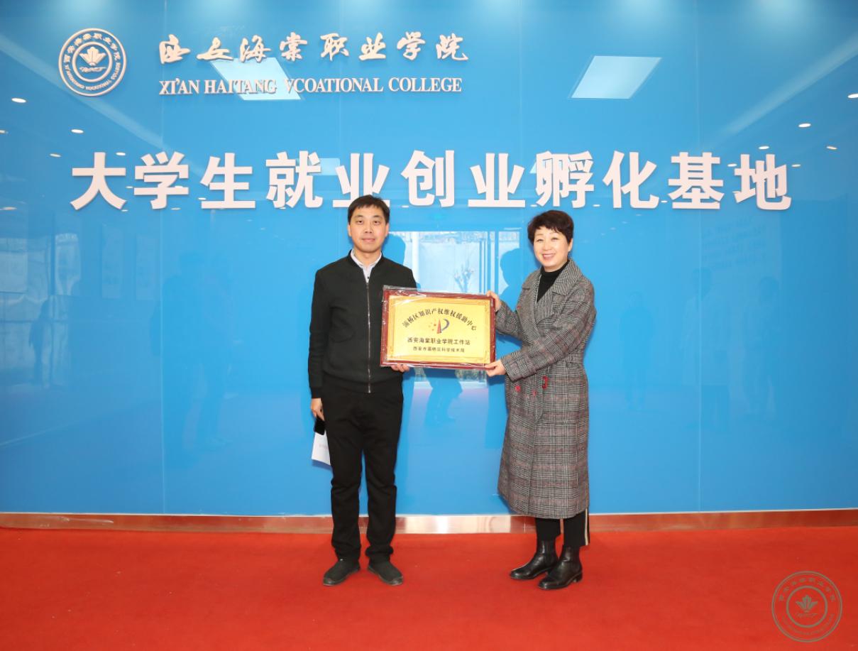 会后,崔智部长一行与王卓理事长、冯居秦院长等学院领导干部及优秀创业代表合影留念,灞桥区科技局王晓芹局长为学院知识产权维护援助中心授牌。