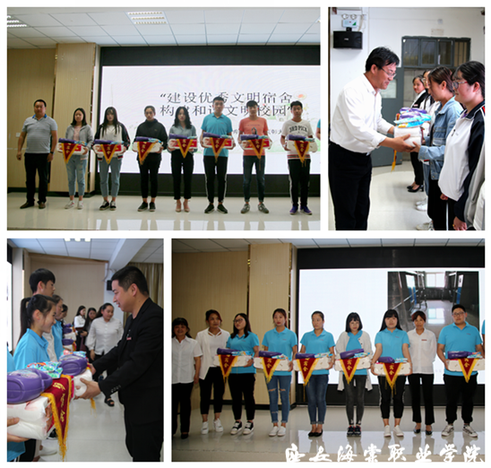 屈萍副处长宣读了《关于表彰“文明宿舍”的决定》,与会领导为“优秀文明宿舍”颁发了荣誉证书和奖品,鼓励大家再接再厉,并号召全校学生学习先进,争创文明。