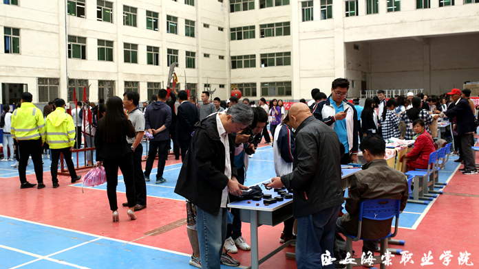 风雨操场的非物质文化遗产展示区,吸引了广大师生的驻足,10余名“非遗”传承人通过展示、制作、教授等形式,让师生们详细了解了“竹编技艺”“风箱制作技艺”“核雕技艺”“剪纸技艺”等非物质文化遗产的无限魅力。