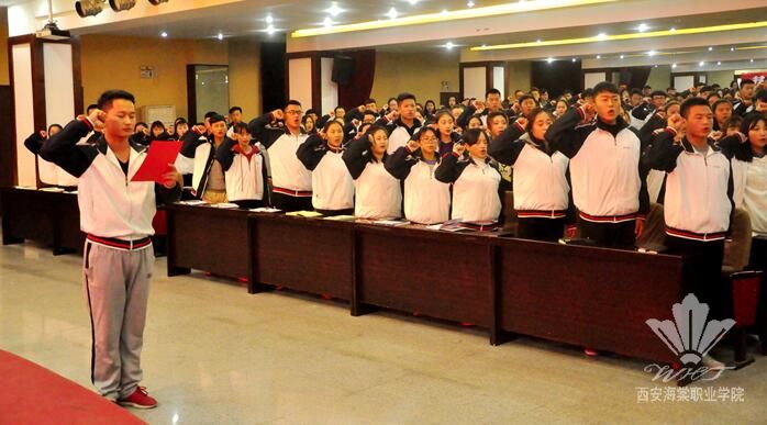 学生干部万烔鸣带领参训学员庄严宣誓,响亮的口号回荡在整个学术报告厅。出席领导向本年度共青团系统先进个人及集体颁奖。