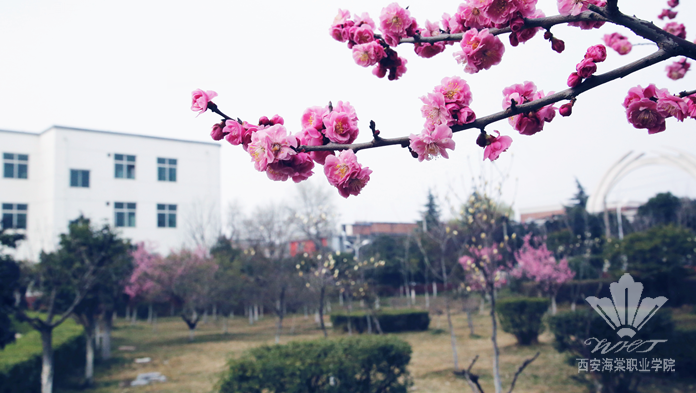 我的海棠,正张开她的眼睛,望着她的学子们,为她穿上一件件美丽的华衣。