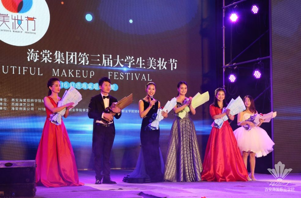 10月18日晚上,白鹿原大学城华灯初上,三秦古都文化与国际时尚潮流在此迸发出碰撞的火花。由西安海棠技师学院培训部主办的“2016海棠集团第三届大学生美妆节”在我院田径场隆重举行。西安海棠医药科技集团、beat365中文官方网站、西安海棠技师学院主要领导及l两万余名师生热情参与。陕西日报、华商报、三秦都市报、腾讯大秦网、西部网、新浪网、凤凰网、今日头条、一点资讯、华禹教育网、中国教育在线、陕西传媒网、爱奇艺陕西地方站等10余家媒体齐聚现场,共同参加本届大学生美妆节。