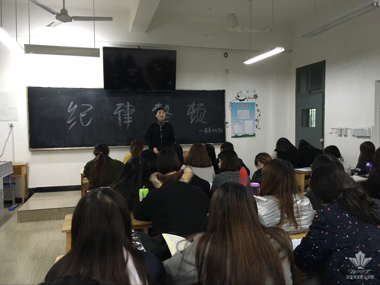 ——医美院召开专题整顿会议。近日,医美院召开全体学生管理系统纪律检查整顿工作会议。在会上,提出近期在教学期间所发现的问题,并对出现问题的班级进行指导,并希望各位辅导员要开展有意义的班级活动,严格考勤制度和请销假制度,杜绝逃课、迟到、早退现象出现,积极调动团学干部和班级学生干部的管理热情,以学辅教,形成良好的互相监督的学习氛围。