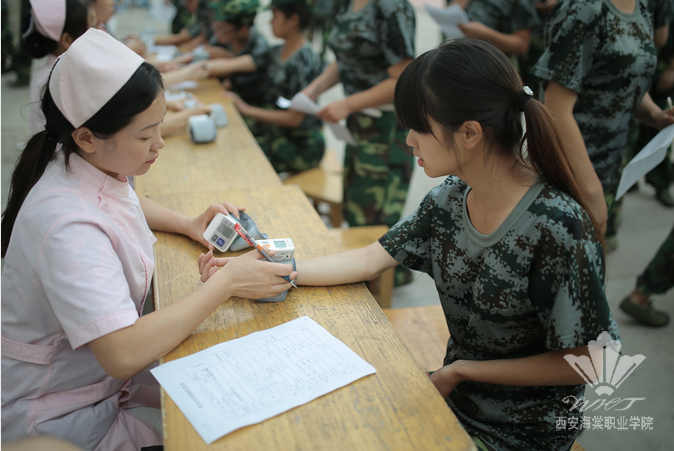 体检中,医务人员认真、仔细为新生进行检查,68名军训工作人员为新生提供贴心的服务。