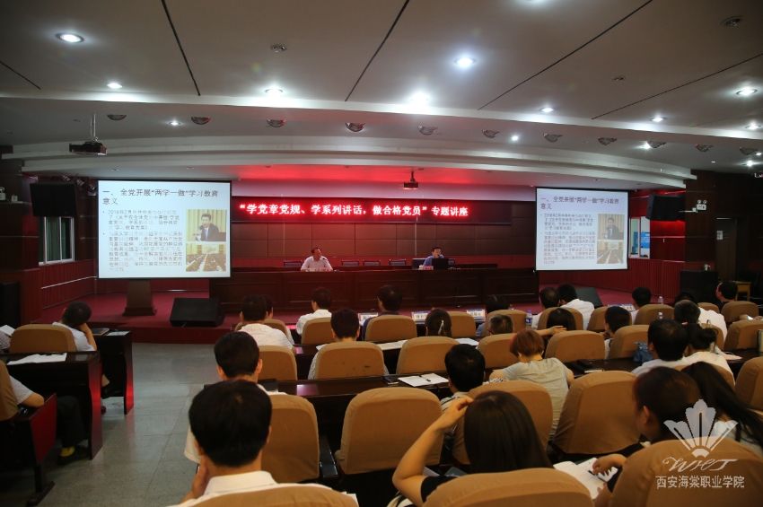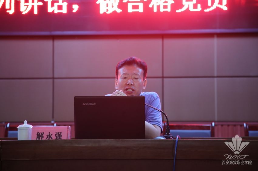 为认真贯彻落实全省教育工作会议精神,按照王卓理事长指示和学院2016年教职员工教育培训实施方案,在中国共产党建党95周年纪念日来临之际,6月20日下午,我院特邀陕西社会主义学院、陕西中华文化学院教研室主任,全国优秀统战理论专家解永强教授在学术报告厅作“学党章党规、学系列讲话,做合格党员”专题辅导讲座。讲座由学院院长、党委副书记冯居秦主持。