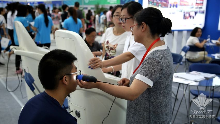 在B3展馆内,我院展位布局合理,通过文字、图片和视频播放等多种方式展示了学院近年来在教育教学、学生管理、师资力量、科研成果、实验实训、校园文化、就业创业等方面取得的成就,充分展示了我院的办学特色和专业优势。展区内,安置的4台美容仪器,由专业教师为考生及家长演示教学过程中实操辅助仪器的用法及功效,吸引了广大考生的驻足。