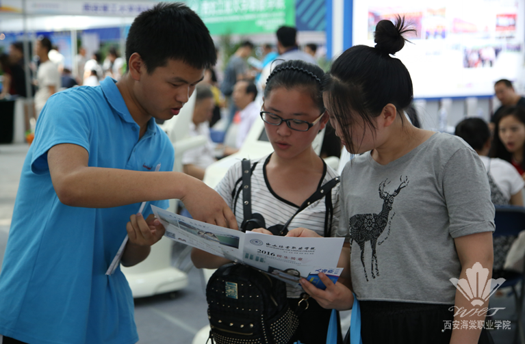 B3馆的西安海棠职业场馆内熙熙攘攘,我院教学名师、教授、各二级学院学科带头人等20余人组成的咨询团队现场为考生及家长答疑。咨询会场上,教师们为学生提供全面的招生咨询服务,从专业选择、专业设置、就业及志愿填报技巧等方面为考生进行科学全面的指导,对于家长和考生们提出的疑问给予耐心解答。而穿梭在人潮中身着蓝色T恤校服的学生志愿者们,手上或提或抱着学院宣传简章,始终面带微笑的向过往家长和学生发放,引导前来咨询的考生和家长在意向报考的专业咨询处就坐。她们得体的语言,明朗的笑容,也成为展区内一道道亮丽的风景线。3天里,我院师生热情细致的服务得到了考生和家长的一致认可,好评如潮。