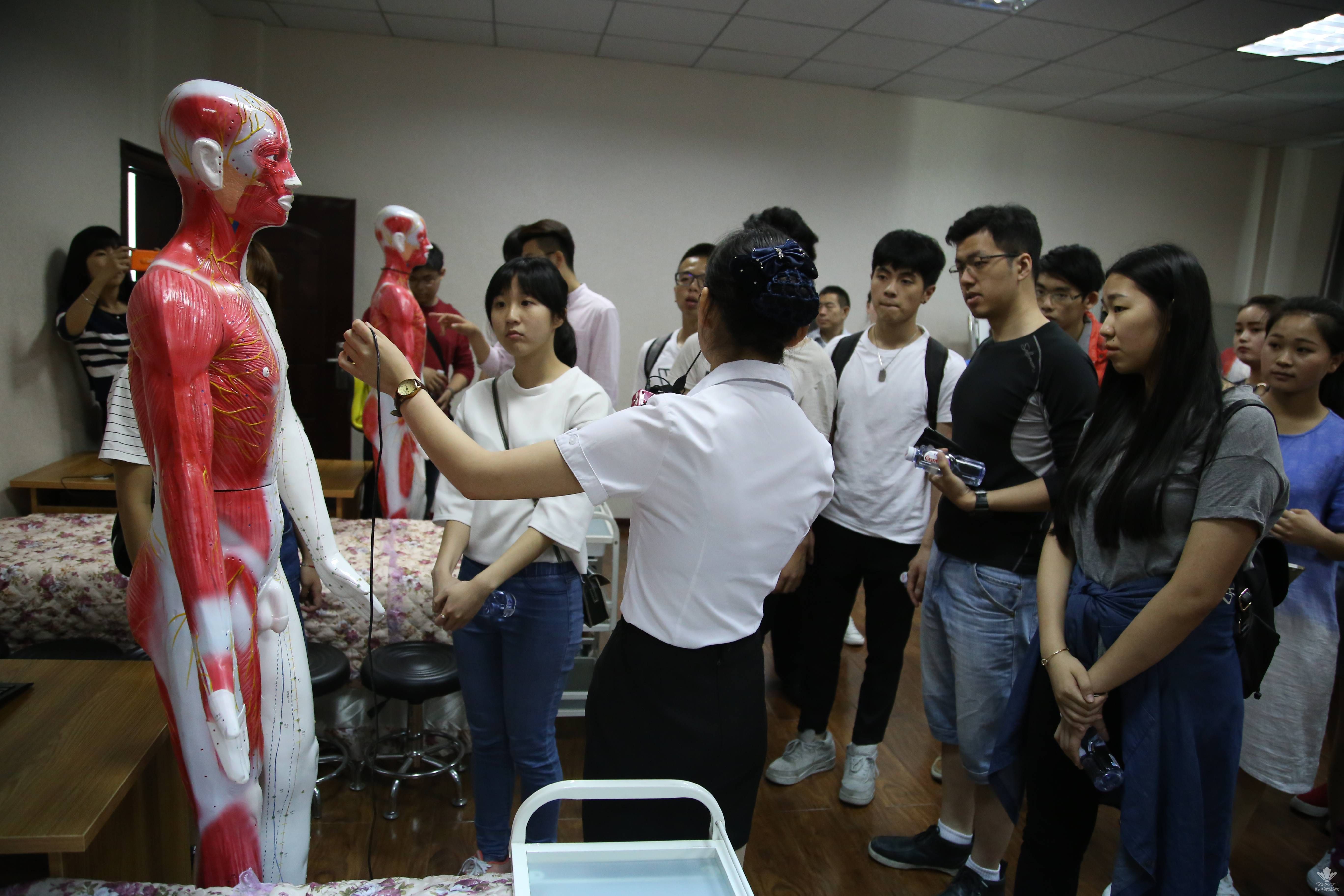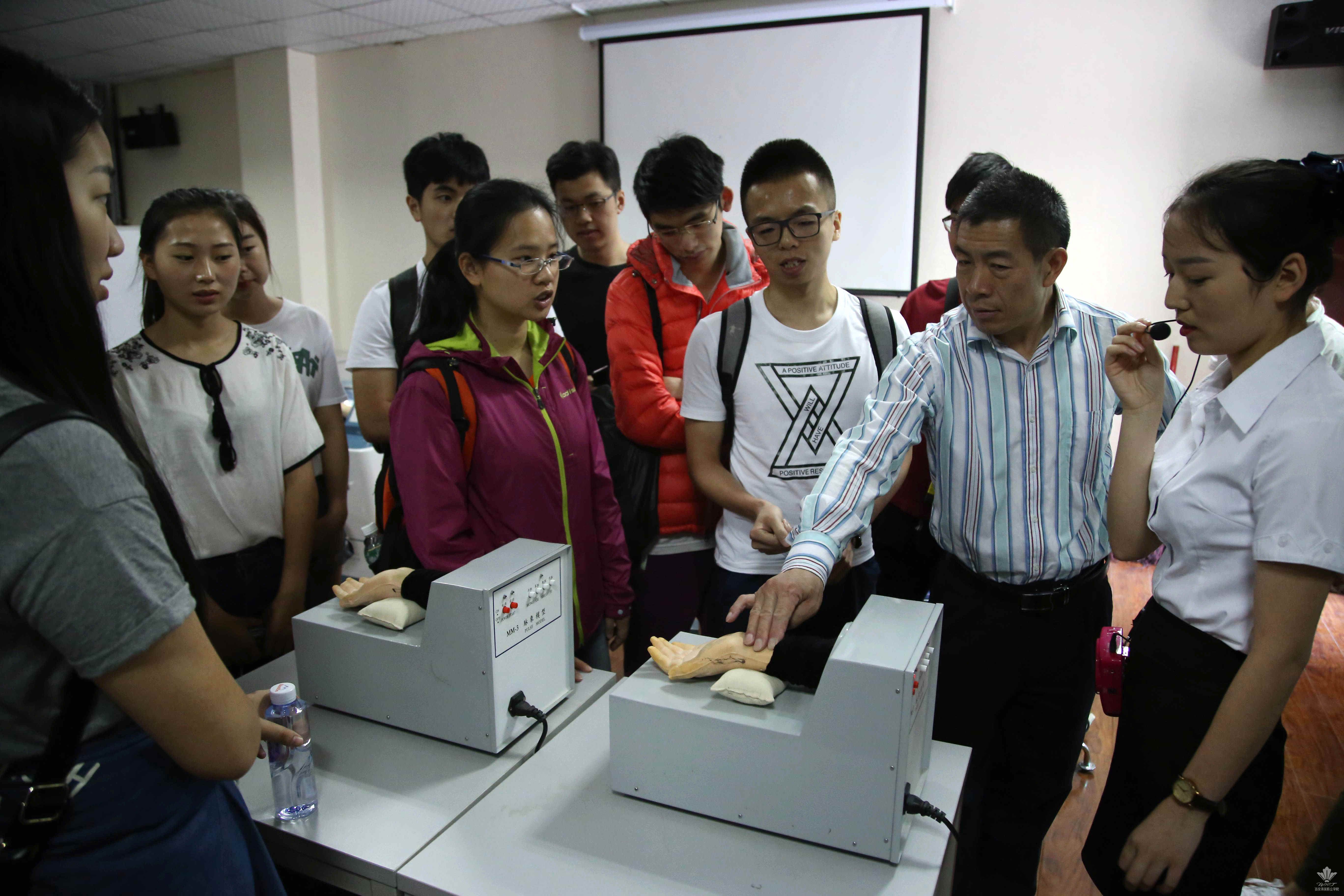 学习。参观团在观看了我院的宣传片后参观了学院的医学美容实验实训中心,中医美容博物馆,深入了解和感受我院特色专业,体验学院传统中医药与现代美容相结合的创新成果。参观过程中,同学们热情高涨、对于医学美容实训室的先进仪器设备充满好奇,在讲解员的耐心讲解下纷纷前去体验,现场气氛热烈。