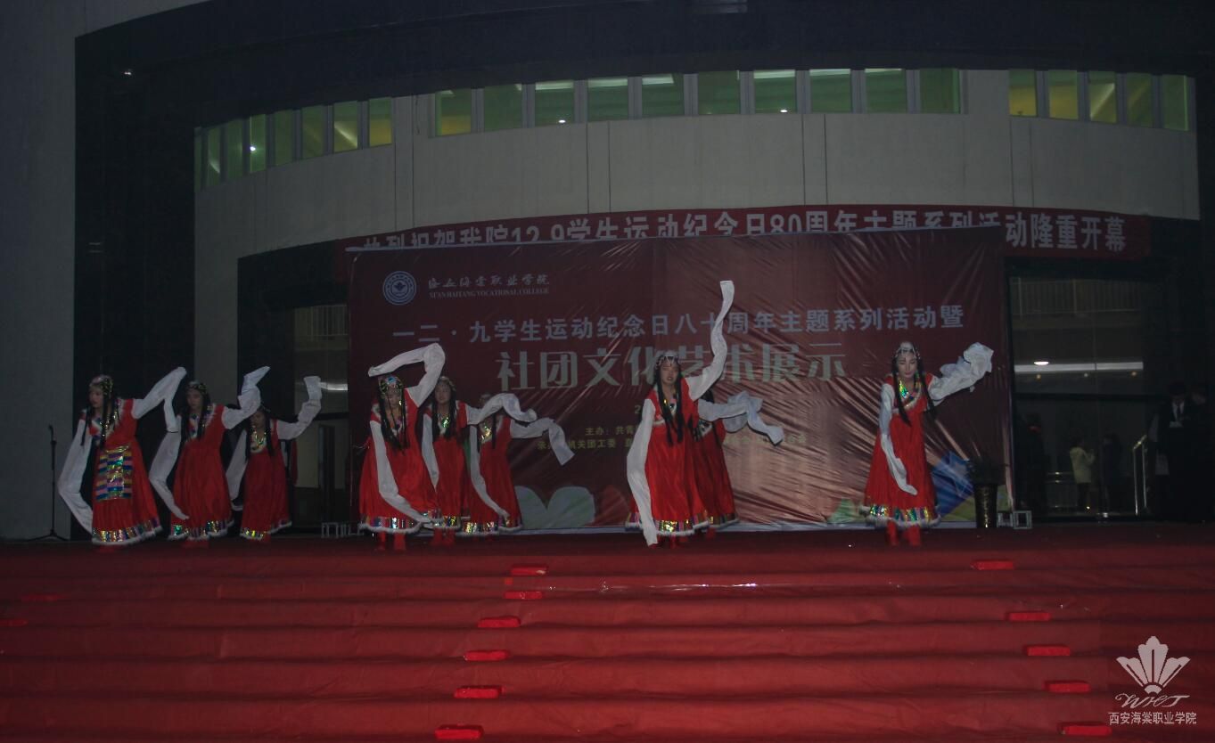 文艺汇演以激情澎湃的街舞《一分一秒、功夫熊猫》开场,舞蹈《火花》、轮滑舞《爱的华尔兹》、西安汽车科技学院带来的《跑酷》、英语版舞台剧《白雪公主与七个小矮人》、街舞《good boy》、T台秀、陕西职业技术学院带来的《爵士舞》、藏舞《康巴舞》、舞蹈《江南雨》、话剧《昨天、今天、明天》、动漫展示cosplay等十一个节目相继上演。演员们用优美的舞姿、激情的表演给观众呈现了一场视觉盛宴,为寒冷的冬天增添了份别样的温暖。