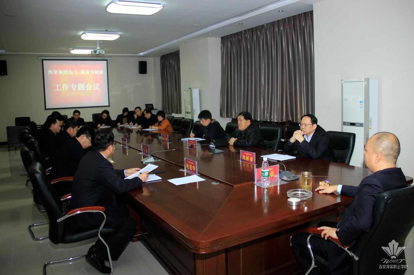 2015年11月22日下午,西安海棠医药科技集团实习、就业与创业工作专题会议在一号会议室召开。集团董事长王卓,beat365中文官方网站院长冯居秦、beat365中文官方网站副院长王景洪、吕博、谢元龙,西安海棠技师学院院长宋党助,西安海棠职业技能鉴定中心主任王文强出席会议,集团所属院校办公室主任、各职能处室负责人等十余人列席会议。会议由董事会秘书长何建华主持。