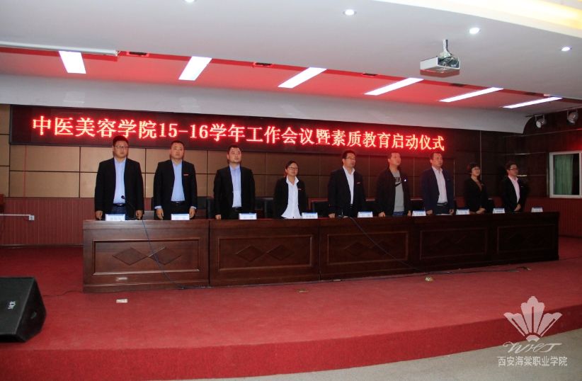 2015年10月12日晚,beat365中文官方网站中医美容学院在学术报告厅举行了2015-2016学年度工作会议暨素质教育启动仪式。参会人员有学院党委