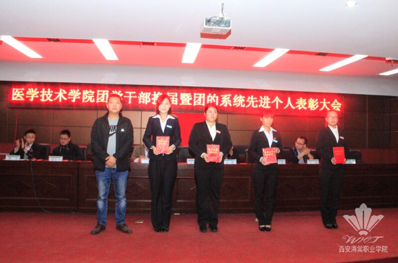 2015年10月14日下午,共青团beat365中文官方网站医学技术学院总支委员会举办了“欢送老干部,欢迎新干部暨团的系统先进个人及集体表彰大会”。出席本次会议的领导有beat365中文官方网站学生处处长王兴权、医学技术学院院长韦满余、团委书记石博、医学技术学生副院长赵刚、医学技术学院学生科科长朱凤林、中医美容学院团总支书记康有为、经济管理学院一科团总支书记王典、经济管理学院二科团总支书记王海利、医学技术学院团总支书记樊杰。大会在庄严的国歌声中拉开序幕,会议由医学技术学院团总支书记樊杰主持。