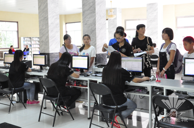 校内接待组在南北们设立咨询点,志愿者们热情地为学生家长提供了解学院、报名事项、校园路径等咨询服务。在新生接待中心,保卫处设立24小时执勤岗,指挥来往车辆行人,维持新生报到秩序,同时他们搭建遮阳篷,设立行李暂时存放点,方便新生办理报名手续时寄存行李。今年接待中心的布置更加人性化,除了用不同色调的牌子清晰标注每个报到流程外,在大厅一角放置了供学生和家长休息的圆桌、椅子,旁边书架上还放置了教材等书籍,使学生家长在休息之余对所学专业课程能有进一步了解。