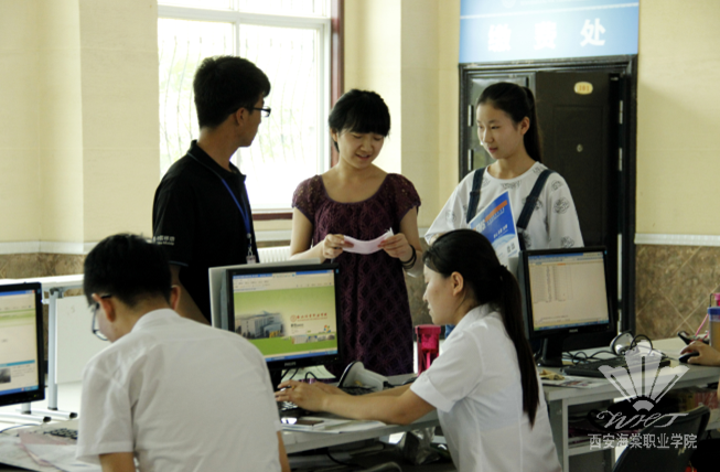 大部分志愿者都是2014级学生,也有部分老师参与其中,共同完成新生接待工作。记者在新生接待中心大厅看到,一群身着黑色体恤,胸前印有海棠校徽的志愿者们正耐心地帮助新生登记。志愿者刘旭说:“大厅接待是帮助新生登记、验证……使他们顺利报名,我们会积极帮助每一位来到海棠的学弟学妹。”