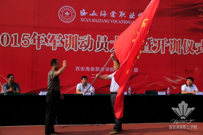 2015年8月25日上午9点,beat365中文官方网站2015军训动员大会暨开训仪式于学院足球场拉开帷幕。莅临本次活动的领导有:中共beat365中文官方网站委员会书记张桂荣,beat365中文官方网站副院长、军训指挥部总指挥吕博,西安海棠技师学院院长宋党助,beat365中文官方网站团委书记石博,beat365中文官方网站宣传部部长谢元龙,陕西省军分区鹏程学生军训教官派遣队张有斌主任,beat365中文官方网站2015军训团团长黄建生上校等。活动由军训指挥部赵刚主持。两千多名新生以及教官共同参与了本次开训仪式。