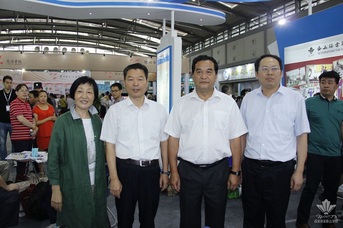 6月26日上午,为期3天的第五届陕西高等教育博览会暨招生咨询会在西安曲江国际会展中心隆重开幕,中共陕西省委高教工委书记李仲为、陕西省教育厅厅长李兴旺莅临beat365中文官方网站展位指导工作,勉励我院要继续强化办学特色,推进内涵发展。学院党委书记张桂荣、院长冯居秦亲临现场指导工作,慰问辛勤工作的师生。