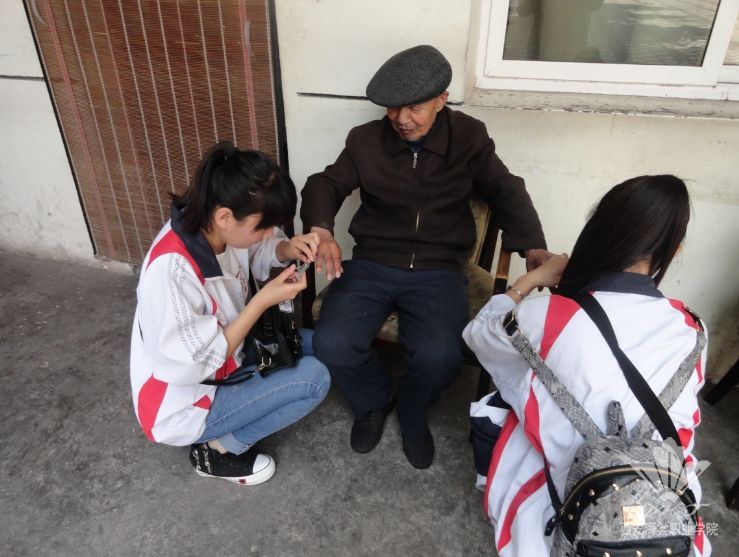 在医疗技术学院团总支书记王典的带领下,西安海棠学院的学生代表们为老人带去了生活用品与保健品,并为老人打扫卫生,陪他们聊天。宣策部门的赵宇婷同学边为老人剪指甲,边向老人讲述海棠校园里的趣事,老人的脸上洋溢出快乐的笑容。为了给老人一个温馨、舒适、干净的生活环境,外联部的苗露露同学也贴心的为老人擦去橱窗的灰尘。