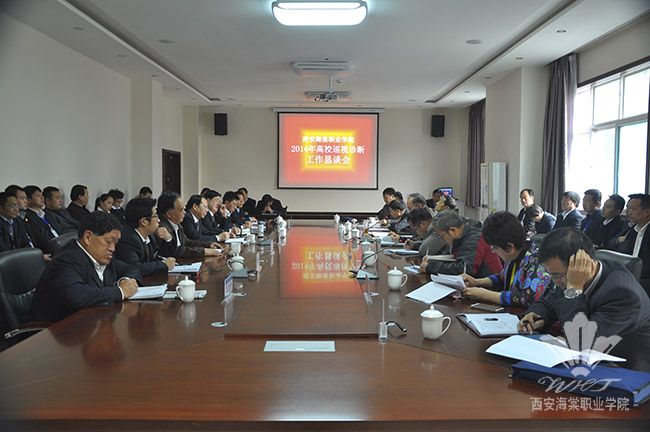 11月6日下午,经过陕西高校巡视诊断工作第三专家组为期3天的紧张工作,巡视诊断工作恳谈会在学院一号会议室举行。陕西高校巡视诊断第三专家组组长、原西安航空高等专科学校党委书记、校长李迈强,巡视诊断第三专家组副组长、杨凌职业技术学院原院长张朝辉,第三专家组成员西安航空职业技术学院院长赵居礼、延安职业技术学院院长兰培英、杨凌职业技术学院院长邓振义、西安交通大学原教务长李能贵,第三专家组秘书、陕西国防工业职业技术学院示范办主任董灵光,第三专家组秘书、西安铁路职业技术学院教务处处长腾勇,专家组联络员、省教育厅高教处副处长赵韩强本次出席会议。海棠学院院长冯居秦,党委书记冯齐昌、副书记王爱民,副院长程宇、吕博、赵景利、王景洪等领导,各二级学院院长、各职能处室主要负责人参加了恳谈会。会议由巡视诊断第三专家组副组长张朝辉主持。
