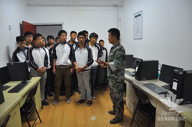 下午4点,学生在预备役公寓门前已整齐站好,预备役应急分队指导员朱吉涛亲热情地带领他们参观了预备役战士宿舍、战备器材库、计算机房等场地。
