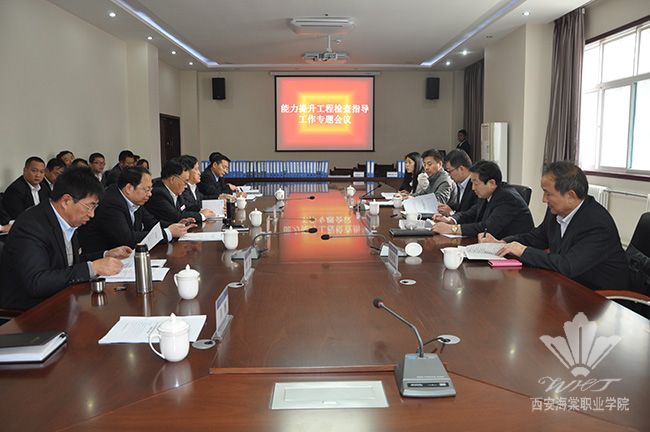 冯居秦院长结合《2014年beat365中文官方网站能力提升工程实施情况自查报告》向专家组汇报了海棠职业学院教学质量、科研能力、教师能力提升的工作计划实施情况。冯院长指出,海棠学院严格落实省教育厅关于能力提升工程的各项工作要求,成立了能力提升工程实施工作领导小组,并建立健全了相关规章制度,积极开展能力提升具体工作。