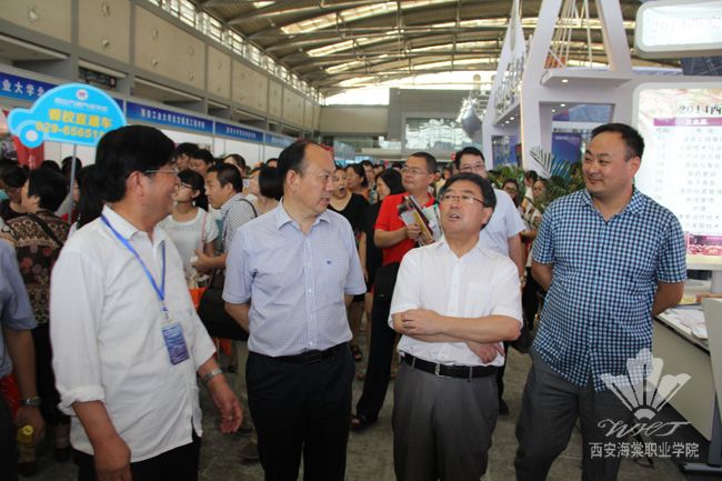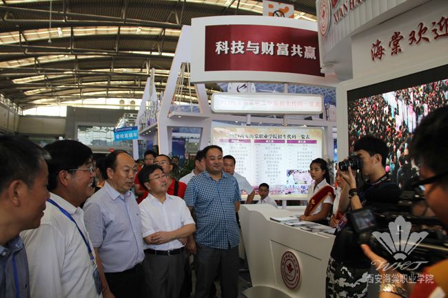 在展位四周,中医美容学院、护理学院、医疗技术学院、理学院、经济管理学院的招生咨询点一字排开,来自海棠各二级学院的10余名资深老教授和骨干教师组成了实力雄厚的咨询服务团,咨询教师们为考生和家长详细的介绍了学院强大的师资力量、就业创业政策、特色专业群设置、学生未来深造和继续教育的主要渠道以及学院的五大办学优势等方面内容。在老教授和学院教师耐心的指导下,许多前来咨询的考生纷纷找到了适合自己的专业和未来发展方向,前来咨询报考事宜的考生与家长络绎不绝。上午10时许,省委高教工委常务副书记董小龙、省教育厅副厅长郭立宏一行来到海棠学院展位前视察,学院党委副书记王爱民、副院长许春海热情的接待了省厅领导一行,并向领导们介绍了学院展位的基本情况。