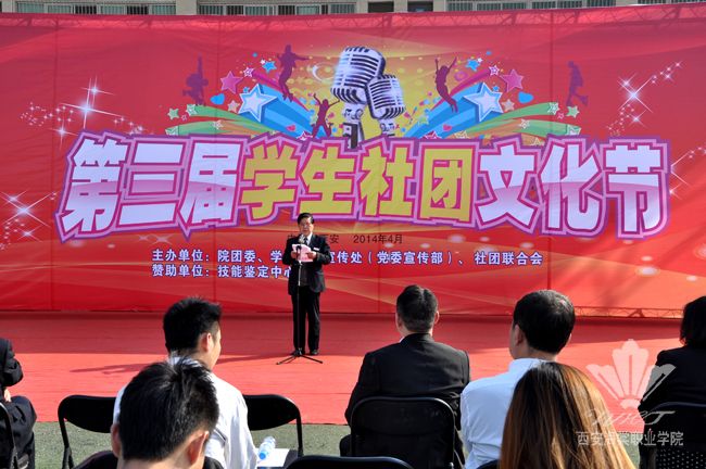党办主任陈义龙在开幕式上宣读了院团委《关于举办西安海棠学院第三届学生社团文化节的通知》,技能鉴定中心王文强主任为各社团指导老师颁发荣誉证书及纪念品。副院长吕博向社团联合会副秘书长黄平授旗,院团委石博书记宣布beat365中文官方网站第三届学生社团文化节正式开幕。