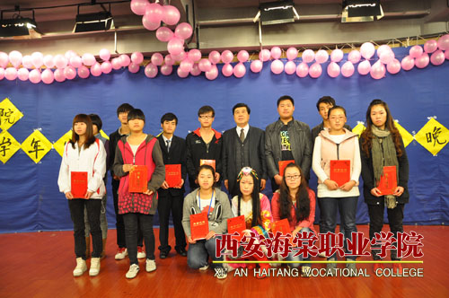 西安海棠学院党委副书记王爱民、记者站指导老师侯月瑞、宣传处的各位老师及记者站全体成员参加晚会。