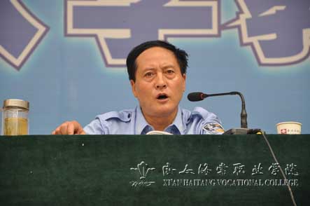 8月14日上午,在西安海棠学院3号楼风雨操场,学院军训指挥部对刚入学的新生进行了入学教育,由西安海棠技师学院办公室主任、资深安保工作者吕春稳给他们做安全教育讲座。