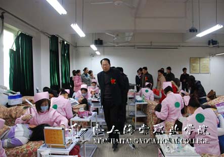 11月下旬的白鹿原,秋风瑟瑟,寒气袭人。可海棠职业学院一号楼大厅里却春潮涌动,在坐的500多名师生屏住呼吸盯着几名倩女在“美容师”的精心打扮眨眼成为美丽的“新娘”时,都情不自禁地鼓起掌来,大厅里爆发出雷鸣般的掌声。这不是什么特别的演出活动,而是由学院主办的首届中医美容技能大赛的一个场景。