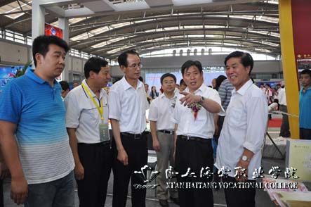 上午十一点,在大家热烈的欢迎下,省教育厅厅长杨希文兴致勃勃地走进我院展览厅,他称赞我们的展厅布置新颖,非常有特色,祝愿我院参展取得良好的效果,并祝海棠学院越办越好。最后,杨厅长还高兴地同院领导合影留念。