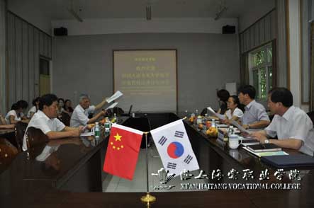 随后,大邱未来大学的三位领导和我院即将赴该校留学的十多名学生及医美专业的教师进行了座谈。金贤顺女士认真回答了学生提出的各种问题,并向大家详细介绍了大邱未来大学医学皮肤护理系的专业特色、课程设置、运营战略和就业前景。金贤顺女士同时代表大邱未来大学欢迎更多的海棠学子前往深造,并希望大邱未来大学能为有志者插上腾飞的翅膀。座谈会气氛非常融洽。