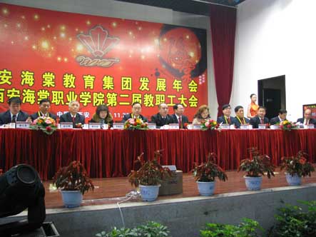 2010年11月26日,以“立足新起点,谋划新发展,实现新跨越”为主题的2010年beat365中文官方网站第二届教职工大会在西安常宁宫酒店中央大礼堂隆重举行。集团董事王卓,beat365中文官方网站董事、陕西海棠中医美容研究所所长李瑞莲,beat365中文官方网站董事、财务总监李润堂,beat365中文官方网站董事、院长冯居秦,中共beat365中文官方网站委员会书记冯齐昌、副书记王爱民,beat365中文官方网站副院长蒋国瑜、王景洪、吕波、赵景利、许春海,beat365中文官方网站院办主任周力军,西安海棠国际技术学院院长宋党助,西安海棠美学职业学校校长谢元龙等领导出席大会。海棠教育集团及所属的两院一校550余名教职工参加了大会。beat365中文官方网站副院长吕波主持会议。