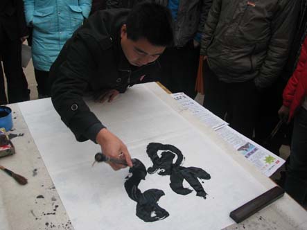 随着主持人宣布比赛开始的话音一落,全场顿时安静了许多,大家屏住呼吸,都在认真的观看着赛场上选手们的精彩发挥。只见选手们一个个气定神闲,从容不迫的起笔、顿笔、转笔、收笔,峰回路转,仿佛一气呵成。霎时间,浓重的墨香溢满了校园。