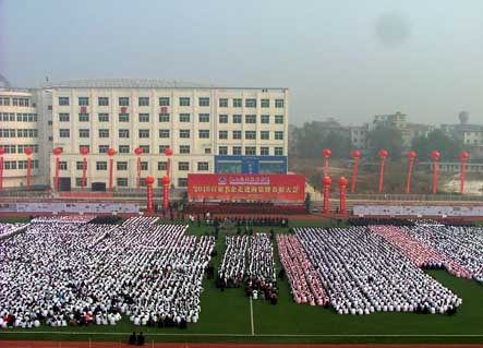 秋高气爽、丹桂飘香。2010年10月19日,迎来了2010百家名企走进海棠暨表彰大会。朝气蓬勃的万余名海棠人相聚在宽广的塑胶操场,共同见证海棠辉煌的历史,憧憬海棠美好的未来。