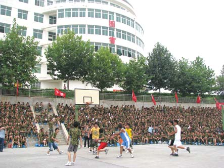 2010年beat365中文官方网站军训团篮球联赛将于8月18日-8月19日在海棠职业学院篮球场举行,比赛历时2天。 此次比赛裁判由各连队教官担任,记分员由指导员担任,2010级各新生按所属连队分男、女组代表队参加比赛。