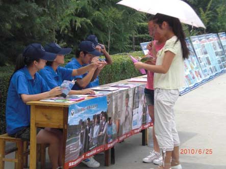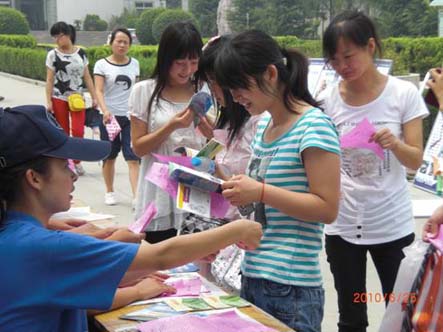 图七:以发放传单的形式让师生了解这次活动的目的。