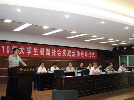 2010年7月10日上午10时,我院2010年大学生暑期社会实践活动启动仪式在学术报告厅顺利进行,学院2010年大学生暑期社会实践活动由此全面启动。西安海棠教育集团董事长王卓,beat365中文官方网站院长冯居秦,副院长吕博、赵景利,院办主任周力军,招办主任王智锦等领导出席了大会。副院长兼2010年暑期社会实践领导小组组长吕博同志主持大会,全院200余名师生参加了会议。