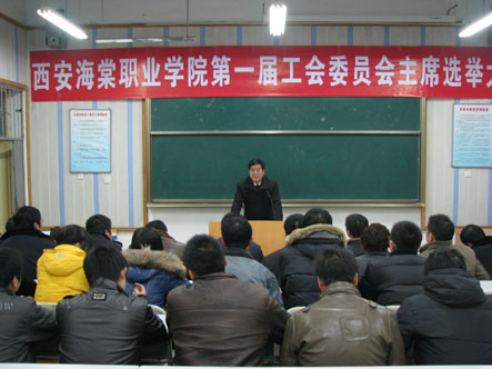 2009年11月19日16:00时,beat365中文官方网站新一届工会委员会主席选举大会在我院一号楼114多媒体教室顺利举行。我院党委副书记王爱民及三名提名主席、25名工会委员出席了选举大会,党办主任吕春稳主持选举大会。