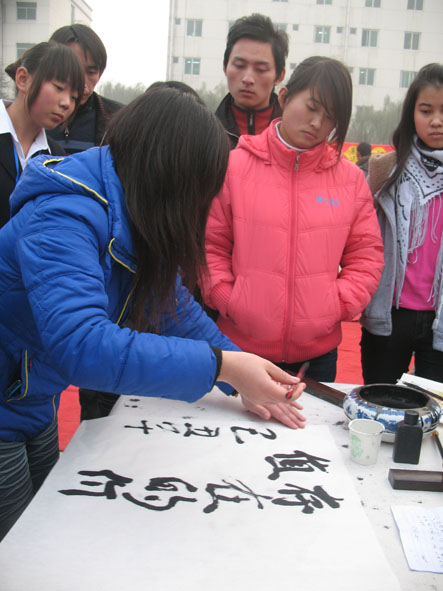 为了弘扬民族文化,发掘我院书法特长生,丰富我院校园文化生活,展现海棠学子风采,我院学生会学习部于2009年11月25日16:20分在我院排球场举行了“beat365中文官方网站第一届‘翰墨飘香’书法大赛。”