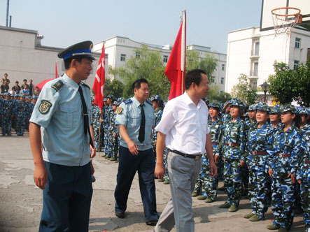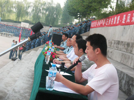 汇报表演后,2009年军训团团长王鉄练同志对2009年为期15天的军训工作进行了总结汇报。并对这次军训给予了高度的评价,对教官和学员表达了深深的感谢和鼓励。我院副院长兼军训团政委吕博同志宣布了军训团优秀教官,优秀指导员,优秀学员名单。颁奖仪式上在场的各位领导分别对优秀者颁发了奖品。我院院长向军训团团长赠送锦旗,09级新生刘芳作为学生代表发表激情洋溢的军训感言。最后,我院院长冯居秦同志做重要讲话,他指出:通过军训我们要学会做人,学会成长,要把军训中不怕苦不怕累的精神沿用到学习中去,严格要求自己。他对2009年的军训工作给予了充分的肯定,同时对参加军训的军训团领导,教官及校相关部门的领导和同志表示衷心的感谢。