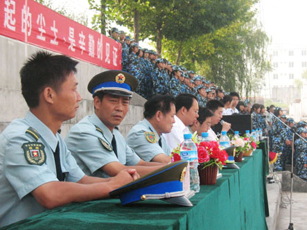 2009年9月1日上午,我院2009级新生军训成果汇报表演暨总结大会在我院东操场隆重举行。出席汇报表演大会的有我院院长冯居秦同志,军训团团长王鉄练同志,副院长兼军训团政委吕博同志,军训团参谋长张有斌少校,军训团副参谋长堵飞少校等。